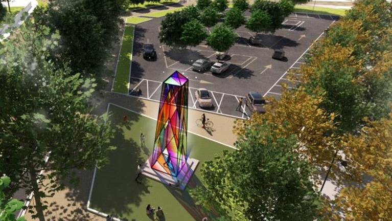 V višino bo obelisk meril deset metrov. Baza pa bo kvadrat 2,5 za 2,5 metra. Ogrodje bo železno, stene pa bodo iz barvanega stekla. Materiala nista naključna, saj simbolizirata prozornost in odpornost. »Različne barve ponazarjajo kulturo,« je razložila tržaška umetnica Celia Stefania Centonze in pristavila, da je na Gorico še posebej navezana, saj ima tu prednike. »V veliko čast mi je, da lahko tudi sama prispevam ob tako pomembnem trenutku, kot je Evropska prestolnice kulture,«je dejala Centonze.