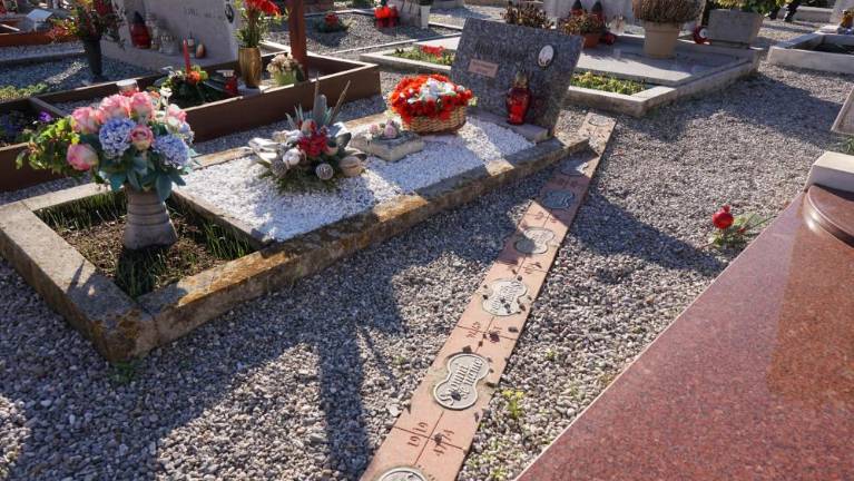 Uredil jo je Goriški muzej in pripoveduje ravno o meji, ki je pokopališče razdelila med Italijo in Jugoslavijo in tako ločila ne samo žive, ampak tudi mrtve. »Nekateri so dejansko imeli noge v Italiji in glavo v Jugoslaviji. Najbolj so trpeli svojci preminulih: kdor se je na primer znašel v Italiji med leti 1947 in 1955, ni mogel pokopavati svojcev v družinskih grobovih, ker je vmes tekla železna žica. Nasploh je bilo v teh letih težko zahajati na pokopališče. Izjemo je predstavljal prvi november, ko je na pokopališče lahko prišel kdorkoli,« je razložil avtor razstave Rok Bavčar.