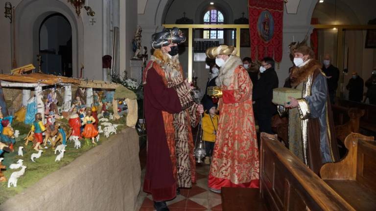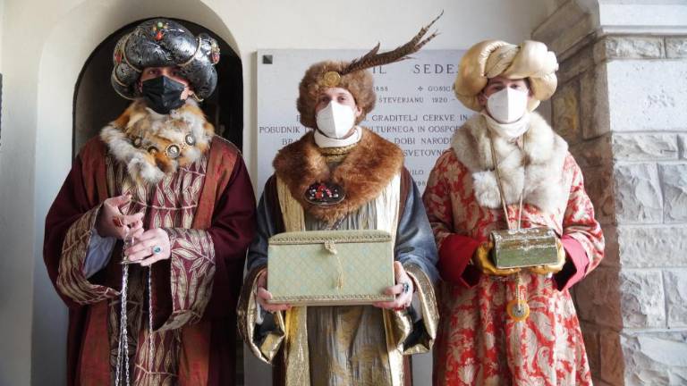 Kljub koroni, kljub karantenam, kljub okužbam, so se sveti trije kralji včeraj poklonili Jezuščku v jaslicah števerjanske cerkve. Med popoldansko mašo so trije koledniki (Alessandro Frandolic Junior, Damjan Klanjšček in Matija Corsi) sodelovali pri obredu. Skrbno jih je kot vselej pripravila Snežica Černic. Zaradi zaskrbljujoče epidemiološke slike so se odpovedali obisku na domovih, prostovoljne prispevke pa bodo zbirali v cerkvi do konca meseca. Sredstva bodo namenili dobrodelnima ustanovama A.B.C. - Associazione per i Bambini Chirurgici del Burlo ONLUS in Spiraglio.
