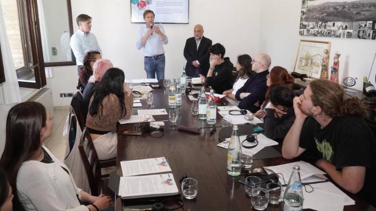 Predstavnik EZTS GO, Ezio Benedetti je mladim, zlasti tistim, ki so v Brda prišli od daleč, obrazložil zgodovino Goriške, ki je velikokrat preživljala tragične dogodke, zdaj pa so se končno porušile pregrade ločevanja in dežela vstopa v obdobje sodelovanja in sožitja. S temi cilji skuša stare zamere premostiti tudi projekt Ars Sine Finibus, je poudaril Benedetti.