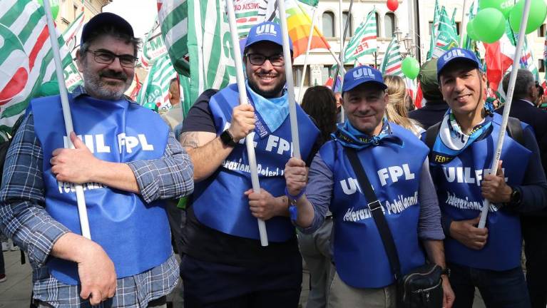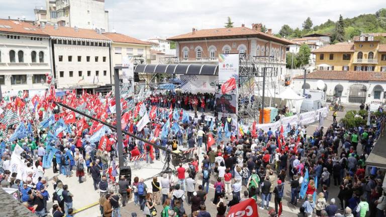Pisana množica se je danes dopoldne zbrala na tržiškem Trgu Republike, kjer so sindikati CGIL, CISL in UIL priredili državni prvomajski shod. Številne delavke in delavce, županje in župane ter druge ljudi, ki so se zbrali na trgu s sindikalnimi, mirovniškimi in drugimi zastavami, so nagovorili številni krajevni predstavniki sindikatov, pa tudi državni sekretarji Pierpaolo Bombardieri (UIL), Luigi Sbarra (CISL) in Maurizio Landini (CGIL).
