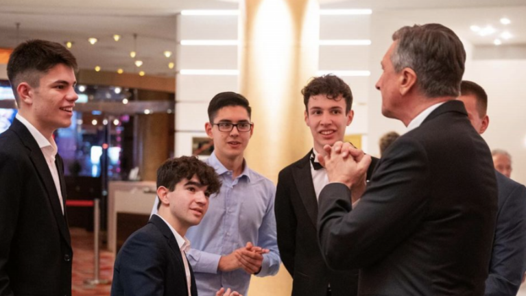 V Vrbi na Koroškem je v soboto potekal tradicionalni maturantski ples slovenske gimnazije iz Celovca. Med maturanti je letos tudi Alessandro Marangon iz Koprivnega, sicer nekdanji učenec osnovne šole Frana Erjavca iz Štandreža in nižje srednje šole Ivana Trinka iz Gorice. Na praznični dogodek je povabil štiri svoje nekdanje sošolce iz Štandreža in Števerjana, skupaj z njimi je pred začetkom večera na hodniku pred dvorano naključno srečal in nagovoril nekdanjega slovenskega predsednika Boruta Pahorja, ki je bil častni gost letošnjega maturantskega plesa.
