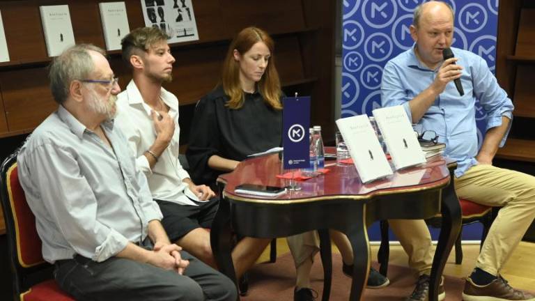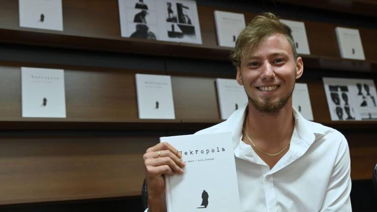 Na današnji »krstni« predstavitvi Nekropole je po uvodnem pozdravu glavne urednice Mladinske knjige Alenke Kepic Mohar pogovor z Jurijem Devetakom, avtorjem spremne besede Zdravkom Dušo in likovno urednico Tanjo Komadina povezoval vodja uredništva leposlovja Andrej Ilc. Beseda je tekla o genezi romana v stripu, ki je plod dveh let dela, pa tudi o umetniški in uredniški plati.