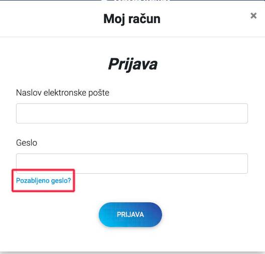 To naredite s klikom na besedilo, označeno z modro barvo: Pozabljeno geslo?. Nato izpolnite obrazec in sledite navodilom.
