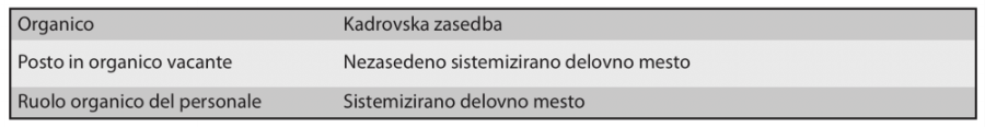 Zapisali ste, da boste na svoji spletni strani objavili seznam/imenik zaposlenih (it. organico). Leksem organik v slovenščini ni uslovarjen, v rabi se v takem kontekstu ne uporablja oziroma pogovorno celo pomeni nekaj drugega (organsko gnojilo), zato njegovo rabo z vidika enoznačnosti, razumljivosti in nedvoumnosti odsvetujemo. Raje zapišite kar zaposleni, osebje ali kadrovska zasedba. Prilagamo še skrčen glosarček uradnih prevodov iz Zvezka normiranih terminov in vsem zaposlenim želimo veliko zadovoljstva na delovnem mestu.