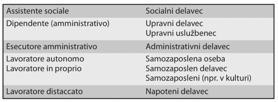V pomoč na vaše vprašanje nam je tudi Zvezek normiranih terminov, prosto dostopen na spletni strani Jezik na klik (https://www.jeziknaklik.it/zvezek/), ki ga v sodelovanju s strokovnjaki posameznih področij pripravljajo sodelavke Centralnega urada za slovenski jezik pri Avtonomni deželi FJK. Tam boste našli normirane prevode večine terminov, povezanih z javno upravo. Prilagamo nekaj primerov z leksemom delavec: