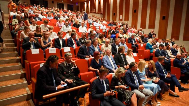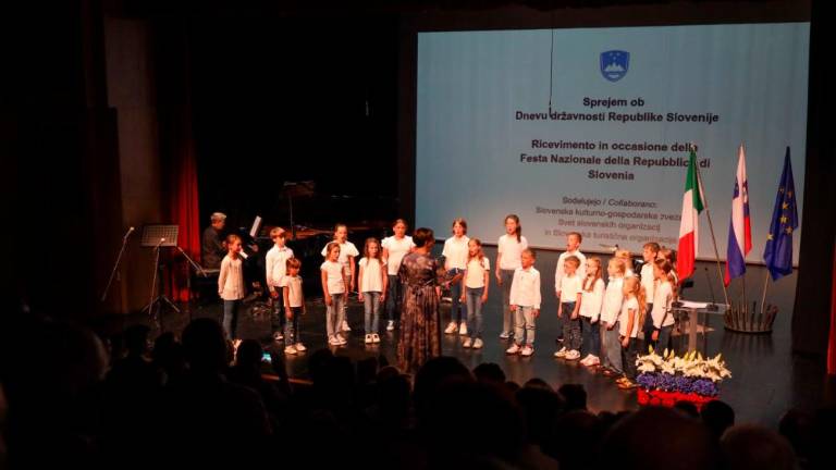 Ob slovenski in italijanski ter evropski himni v izvedbi Otroškega pevskega zbora Emil Komel je v Kulturnem centru Lojze Bratuž v Gorici danes potekal sprejem ob dnevu državnosti Republike Slovenije v organizaciji slovenskega generalnega konzulata v Trstu v sodelovanju s krovnima organizacijama SKGZ in SSO ter ob podpori Slovenske turistične organizacije (STO), čedajske banke Civibank Sparkasse in Zadružne kraške banke Trst Gorica. Letošnji sprejem je potekal v znamenju Evropske prestolnice kulture v Novi Gorici in Gorici, ki je simbol sodelovanja in zgled za vso Evropo. To so v svojih govorih poudarili generalni konzul RS Gregor Šuc, podpredsednik slovenske vlade in minister za Slovence v zamejstvu in po svetu Matej Arčon ter župana Gorice in Nove Gorice Rodolfo Ziberna in Samo Turel, ki so ob tem poudarili uspehe Slovenije v 34 letih samostojnosti ter vlogo in pomen Slovencev v Italiji pri ohranjanju identitete in čezmejnem povezovanju. V imenu podpornikov pa so spregovorili vodja STO v Italiji Aljoša Ota, članica upravnega odbora Civibank Lidia Glavina in predsednik upravnega odbora ZKB Adriano Kovačič. Kulturni program pa so ponudili gojenci SCGV Emil Komel in Glasbene matice.