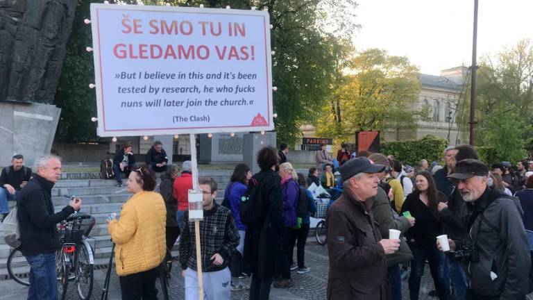 Opozorilni piknik. Tako bi lahko opisali običajno petkovo snidenje pred parlamentom v Ljubljani v sklopu pobude, ki se je pred dvema letoma rodila kot kolesarski protest, nato se prelevila v gibanje za človekove pravice, demokracijo in vladavino prava. Udeleženke in udeleženci, ki so svoj čas zasnovali kampanjo Gremo volit, so sinoči opozorili zmagovalca volitev Roberta Goloba in njegovo Gibanje Svoboda, »da še smo tu in gledamo vas«, kar je tudi pisalo na edinem napisu na shodu.