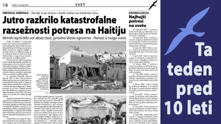 Danes nadaljujemo obujanje spominov s prispevkom o katastrofalnem potresu, ki je prizadel karibsko državo Haiti. Članek je bil objavljen v četrtek, 14. januarja 2010.