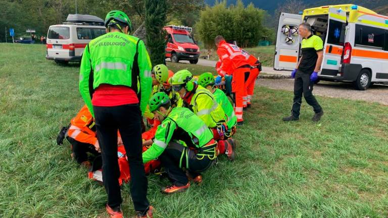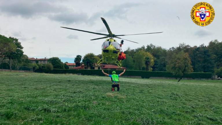 Gorski reševalci iz Pordenona so ob 12.20 posredovali v Budoi, severno od Pordenona, kjer se je poškodoval 30-letni kolesar iz Porcie. Mladenič, ki je bil v družbi drugega kolesarja, je med vožnjo navzdol zaradi zdrsa prednjega kolesa na blatni površini nerodno padel in z obrazom udaril ob kamnita tla. Na srečo je nosil čelado, ki je ublažila posledice padca, kljub temu pa je utrpel razpočno rano in več udarcev. Na kraj je priletel deželni reševalni helikopter. Zdravstveno osebje mu je nudilo prvo pomoč, nato so ga naložili na nosilo in s helikopterjem prepeljali do reševalnega vozila, s slednjim pa v pordenonsko bolnišnico.