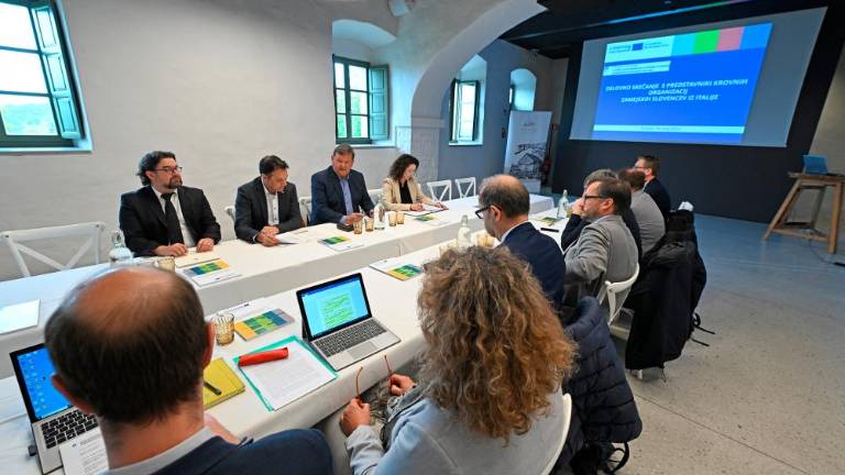 Po februarskem prvem srečanju sta se včeraj slovenski minister za kohezijo in regionalni razvoj Aleksander Jevšek in minister za Slovence v zamejstvu in po svetu Matej Arčon na Gradu Štanjel spet sedla za mizo s predstavniki narodne skupnosti v Italiji. Na srečanju, ki so se ga med drugimi udeležili predsednica SKGZ Ksenija Dobrila, predsednik SSO Walter Bandelj, predsednik SDGZ Robert Frandolič in deželni tajnik Kmečke zveze Erik Masten, je glavnina pogovorov bila povezana z izvajanjem programa Interreg Italija-Slovenija 2021-2027 in nadaljnjimi možnostmi in perspektivami za sodelovanje z organizacijami slovenske narodne skupnosti v Italiji na projektnem področju.