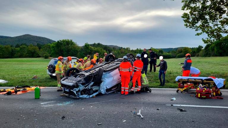 Včeraj ob 16.30 so policisti posredovali na cesti med Materijo in Hrpeljami, kjer se je pripetila prometna nesreča, v katero je bil vpleten avtomobil italijanskih registrskih tablic. Ugotovili so, da je 70-letni voznik, državljan Italije, ki je peljal od Materije proti Hrpeljam, zapeljal s ceste in trčil v drevo, pri čemer se je avtomobil prevrnil na streho. Poškodovale so se štiri osebe, sopotnica je ostala ukleščena v zveriženi pločevini. Tri osebe so reševalci odpeljali na zdravljenje v izolsko bolnišnico, eno osebo pa so oskrbeli na kraju. Na kraju so bili gasilci PGD Materija, ki so zavarovali kraj nesreče in do prihoda zdravstvenega osebja ponesrečenim nudili prvo pomoč ter rešili sopotnico iz razbitin, zdravnik in reševalec ZP Hrpelje, zdravnik ter reševalci NMP Sežana, policisti PP Kozina in PPP Koper ter uslužbenci cestnega podjetja.