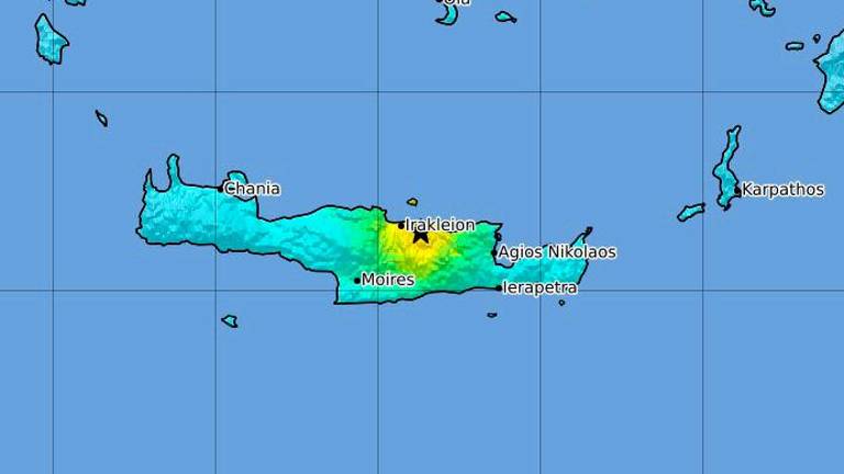 Na Kreti so danes okoli 9. ure po lokalnem času zabeležili močan potres s središčem 23 kilometrov jugovzhodno od Irakliona. Dosegel je magnitudo 5,8, čutili pa so ga po vsem otoku in tudi na bližnjem otoku Santorini. Ljudje so bežali na ceste. Po prvih podatkih naj ne bi bilo žrtev, potres pa je povzročil večjo škodo predvsem na starejših stavbah zlasti v kraju Arkalohori blizu Irakliona.