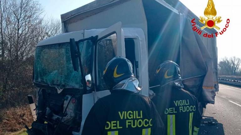 Na avtocesti A28 sta danes ob 9.30 med izvozoma Villotta in Azzano Decimo trčila tovornjaka. Enega od dveh tovornjakarjev, ki je ostal ukleščen v razbitinah, so s hidravličnim orodjem rešili gasilci iz kraja San Vito al Tagliamento. Zdravstveno osebje ga je na kraju stabiliziralo, nato so ga z reševalnim helikopterjem prepeljali v videmsko bolnišnico, kamor so ga sprejeli z rumeno triažno kodo. Gasilci so zavarovali območje in so z osebjem družbe Autostrade Alto Adriatico odpravili posledice nesreče. Na kraju so bili še policisti, ki preiskujejo vzroke nesreče.