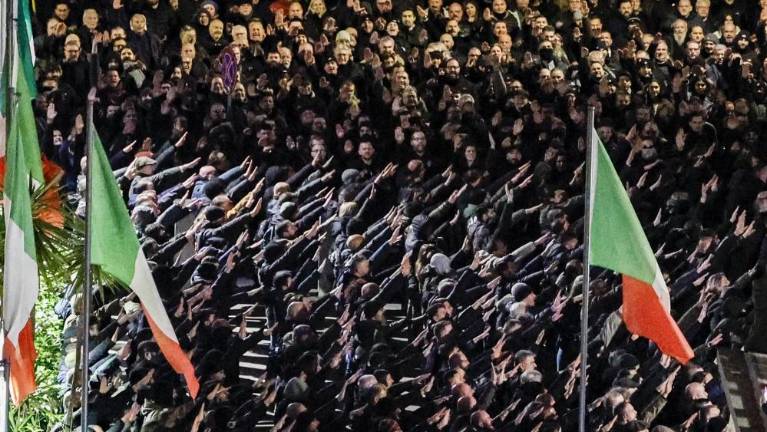 V Ulici Acca Larenzia v Rimu se je včeraj ponovilo vsakoletno kolektivno razkazovanje neofašistične nostalgije. Kakih 1300 skrajnežev se je s fašističnim pozdravom poklonilo misovcem Francu Bigonzettiju, Francescu Ciavatti in Stefanu Recchioniju, ki so bili tam ubiti pred 47 leti.