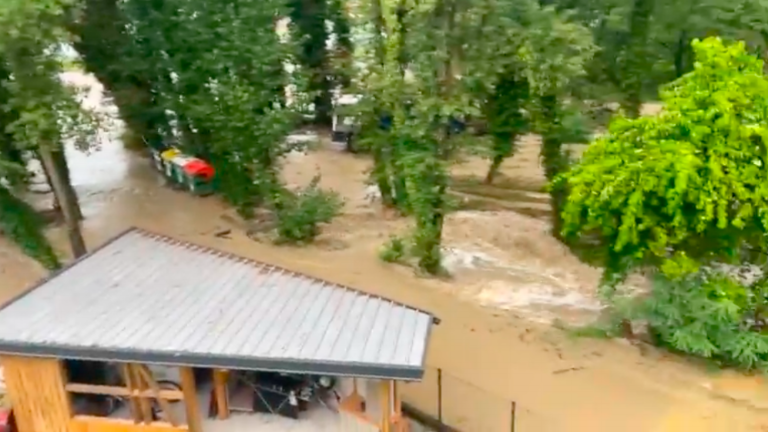 Na posnetkih, ki so jih uporabniki delili na Facebooku, je videti, da poplavlja Škofijski potok in da so na območju Škofij nastale večje težave.
