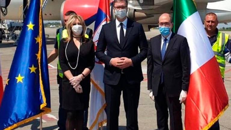 Včeraj so z beograjskega letališča poletela v Italijo štiri letala z medicinsko opremo, še štiri pa bodo poletela danes. Odhod letal je pospremil srbski predsednik Aleksandar Vučić, ki je dejal, da je Srbija »zagotovila višek opreme in tisto, česar ne potrebujemo, zato vse to pošiljamo našim italijanskim prijateljem,« je predsednik povedal na letališču.