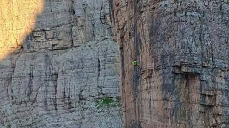Gorski reševalci iz Valcelline so včeraj ob 19. uri posredovali v furlanskih Dolomitih na Pordenonskem, kjer je plezalec med spustom z vrha Campanile di Val Montanaia obvisel na vrvi, oddaljen od stene nad praznino in ni mogel več nikamor. Vrv se je zataknila, pri čemer drugi plezalec, ki je bil z njim privezan, ni mogel pomagati. Na pomoč so poklicali drugi plezalci, ki so bili v bližini bivaka Perugini.