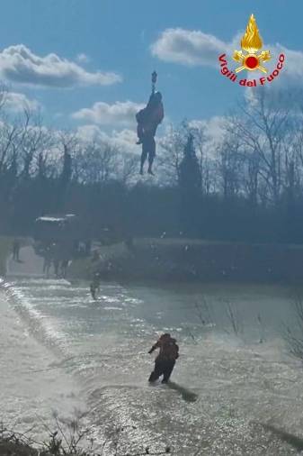 Gasilci iz Čedada in iz Vidma ter gasilska enota za gorsko, jamarsko in vodno reševanje SAF so danes popoldne ob 14.10 množično posredovali na območju občine Premarjag (Premariacco) na Čedajskem, kjer je v kraju Casali Malina voda odnesla moškega, ki je nameraval prebresti reko Malino po trenutno zaprtem prehodu. Tok ga je ponesel do vrtinca, kjer je tvegal utopitev. Na kraj sta priletela gasilski helikopter, ki je bil na nujnem poletu v Veroni in reševalni helikopter deželne službe za nujno medicinsko pomoč 118.
