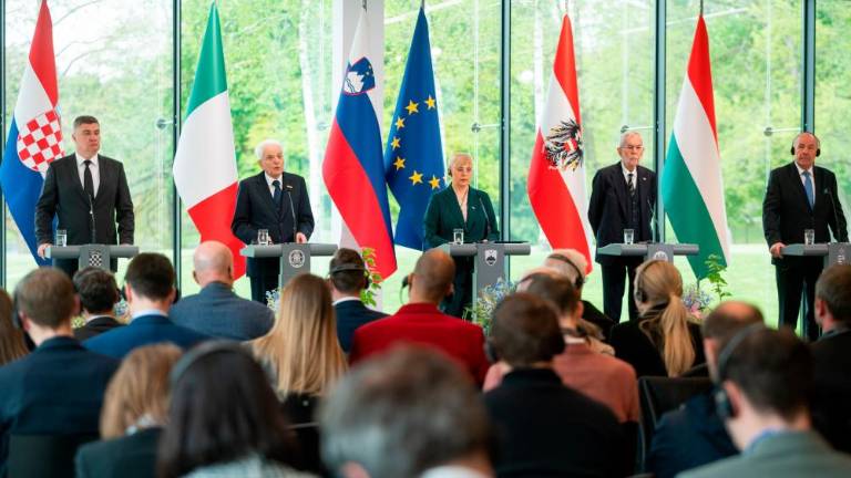 Brdo pri Kranju Odprava poostrenega nadzora na meji, širitev EU na države Zahodnega Balkana, podpora Ukrajini pred rusko agresijo, izzivi, ki čakajo Evropsko unijo, a tudi pomen projekta Evropske prestolnice kulture 2025, v katerem bosta v ospredju Nova Gorica in Gorica. Te so bile le nekatere izmed tem na dnevnem redu današnjega predsedniškega vrha, ki ga je ob praznovanju dvajsetletnice članstva Slovenije v EU na Brdu pri Kranju gostila slovenska predsednica Nataša Pirc Musar, udeležili pa so se ga kolegi iz vseh sosednjih držav: italijanski predsednik Sergio Mattarella, hrvaški predsednik Zoran Milanović, avstrijski predsednik Alexander Van der Bellen in madžarski predsednik Tamás Sulyok.