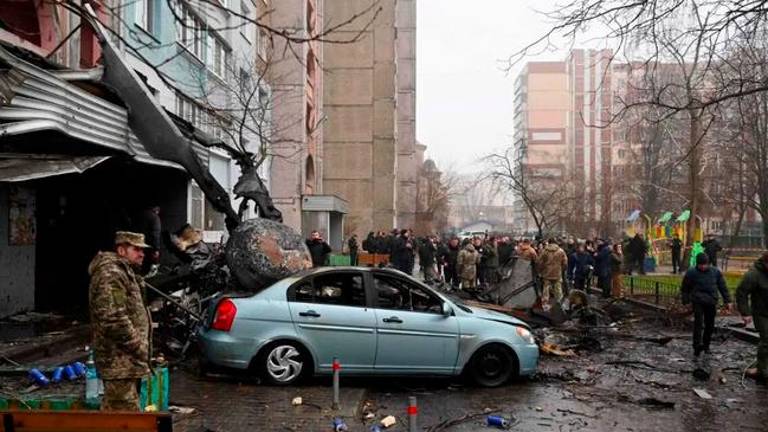 V ukrajinskem mestu Brovari pri Kijevu je v bližini vrtca strmoglavil helikopter, je danes sporočil guverner kijevske regije Oleksij Kuleba. Po najnovejših podatkih je pri tem umrlo najmanj 14 ljudi, med njimi ukrajinski notranji minister Denis Monastirski in trije otroci, poročajo tamkajšnji mediji, najmanj 25 je bilo ranjenih, med njimi 10 otrok. »V mestu Brovari je helikopter padel v bližini vrtca in stanovanjske stavbe. V vrtcu so bili otroci in zaposleni. Zabeležili smo žrtve,« je na Telegramu sporočil guverner kijevske regije Oleksij Kuleba. Preiskava dogodka še poteka.