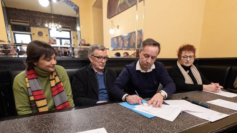 Slovenska skupnost in Demokratska stranka sta danes zjutraj v kavarni San Marco podpisali politično-volilni dogovor, s katerim se med drugim obvezujeta, da bosta sodelovali na deželnih volitvah, ki bodo potekale 2. in 3. aprila.