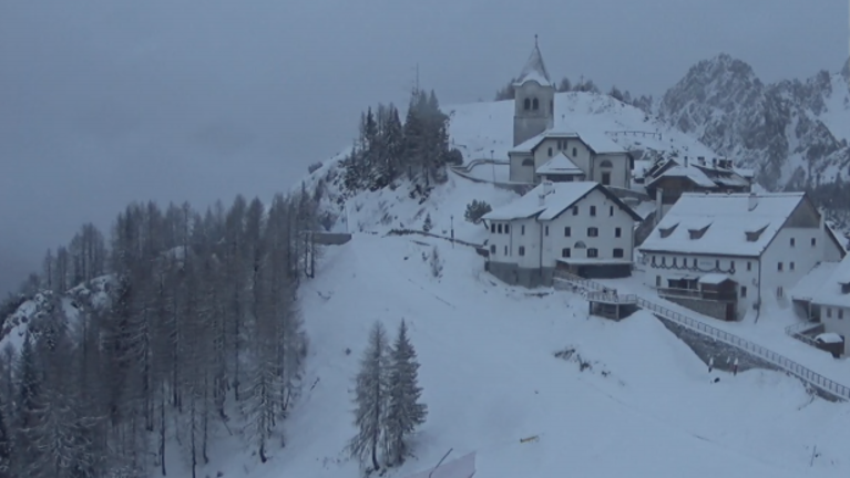Če v Trstu že ves dan vztrajno dežuje, pa je sneg pobelil Višarje. Kot smo napovedali, sta se ob izraziti odjugi tempetratura in meja sneženja čez dan naglo zvišali.