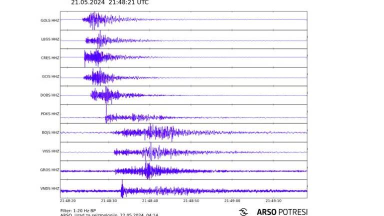 Pozno sinoči, v torek, 21. maja 2024, ob 23.48 so seizmografi slovenske državne mreže potresnih opazovalnic zabeležili potres magnitude 1,1 v bližini Krškega, 75 km vzhodno od Ljubljane.