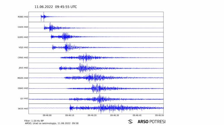 Danes, v soboto, 11. junija 2022, ob 11.45 so seizmografi slovenske državne mreže potresnih opazovalnic zabeležili potres magnitude 2,0 v bližini Bovca.
