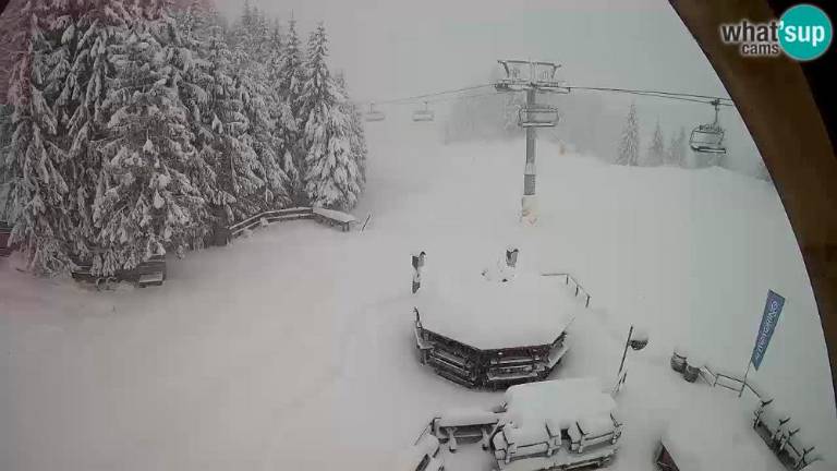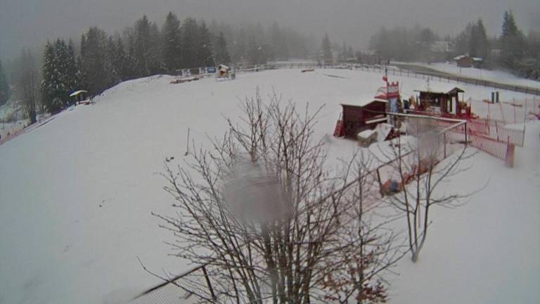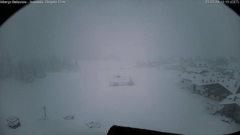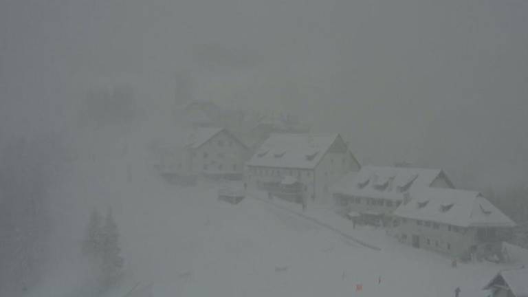 Medtem ko v nižinah piha močan jugo, ki je v Trstu presegel hitrost 60 kilometrov na uro in so bile zato doslej padavine na Tržaškem le občasne in povečini rahle, je po pričakovanjih močno sneženje zajelo gorski svet v FJK. Zaradi močne jakosti padavin in nekoliko nižjih temperatur, od tistih, ki so bile pričakovane, je meja sneženja segala do nižjih gorskih predelov, se pravi, da je bila na nadmorski višini okrog 1000 do 1200 metrov. Dopoldne je poleg na Višarjah in na Zoncolanu močno snežilo med drugim tudi na Piancavallu, v kraju Forni di Sopra in v Plodnu. Povsod se je nabrala že kar debela snežna odeja. Skoraj povsod v omenjenih krajih je bila temperatura pod ničlo, le na Piancavallu je bila rahlo pozitivna.