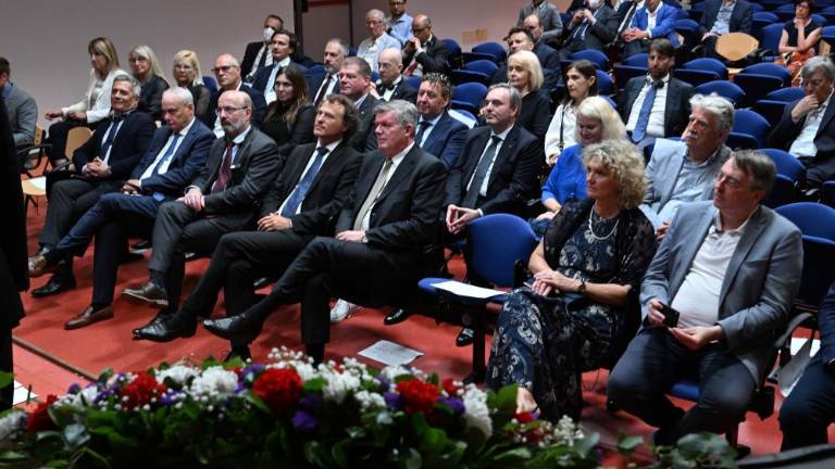 Prisotne, med katerimi so bili številni predstavniki italijanskih in slovenskih institucij in ustanov, je najprej nagovoril konzul Peter Golob in prenesel pozdrav generalnega konzula v Trstu Vojka Volka, ki je kot državni sekretar v kabinetu slovenskega predsednika vlade okrepil ožjo ekipo Roberta Goloba. Na oder so zatem povabili veleposlanika RS v Italiji Tomaža Kunstlja, ki se mu v kratkem zaključuje mandat v Rimu. Pisni pozdrav je posredovala senatorka Tatjana Rojc.