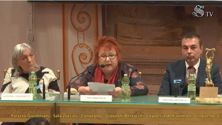 V Rimu so danes dopoldne v polni senatni Dvorani Zuccari podelili nagrado mednarodnega natečaja za poezijo in literaturo Giovanni Bertacchi beneški pesnici Andreini Cekovi Trusgnach. Na simpoziju o Bertocchiju kot pesniku duše med lokanimi jeziki, mejami in svobodo so med drugim spregovorili senatorka Tatjana Rojc, nagrajena pesnica Andreina Cekova Trusgnach, avtorica zbirke Pingulauenca ki jo nie bluo - L’altalena che non c’era, iz katere je prisotnim prebrala tudi nekaj poezij ter veleposlanik Republike Slovenije v Rimu Matjaž Longar.
