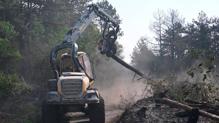 Na Krasu – na slovenski strani meje – so začeli odstranjevati lesno biomaso, ki je ostala po požaru. Do 20. avgusta bo treba odstraniti okoli 5000 kubičnih metrov biomase, ki bi lahko bila netivo za nove požare.