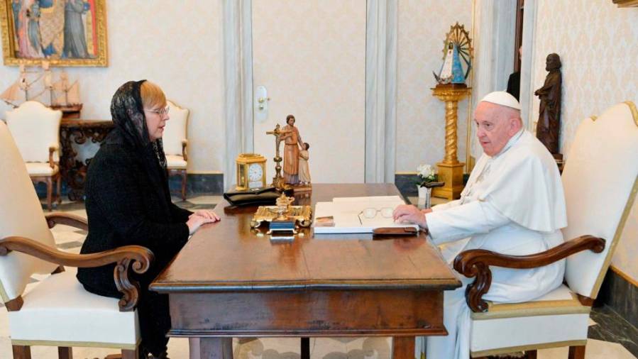 Predsednica je povedala, da papež hvaležno sprejema vlogo morebitnega mediatorja med ukrajinskim predsednikom Volodimirjem Zelenskim in ruskim predsednikom Vladimirjem Putinom. »Iz njegovih besed sem razumela, da bo delal na tem in da se bo maksimalno potrudil, da bo do tega prišlo,« je dejala.
