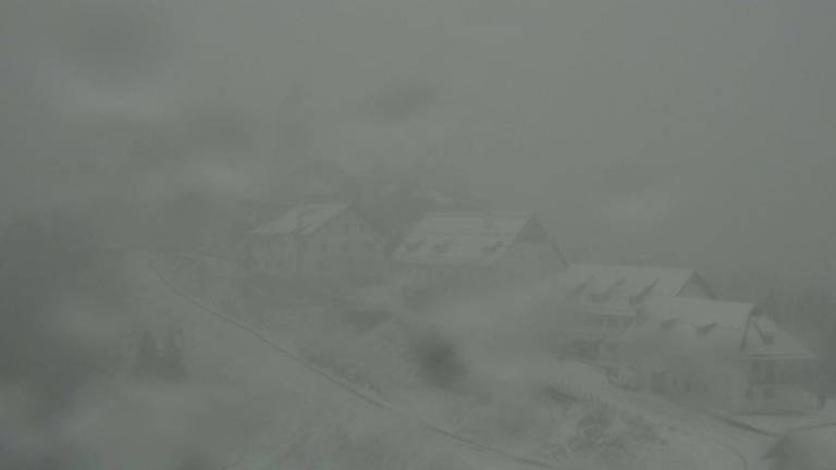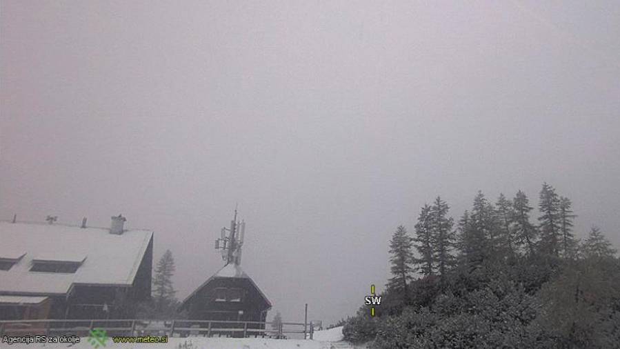 Višarje in Vršič je danes popoldne rahlo pobelil sneg, kar je bilo za danes pričakovano. Gore je že zaobjel občutno hladnejši zrak od minulega, mestoma rahlo sneži ali naletava sneg tudi v Karnijskih Alpah, denimo na Zoncolanu. Meja sneženja se bo do večera previdoma spustila do nadmorske višine okrog 1400 metrov.
