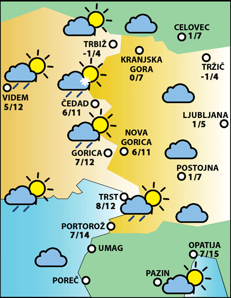 Jutri zjutraj in dopoldne bo sprva oblačno vreme; popoldne izboljšanje z obširnimi razjasnitvami zlasti v nižinskem pasu in na obali.