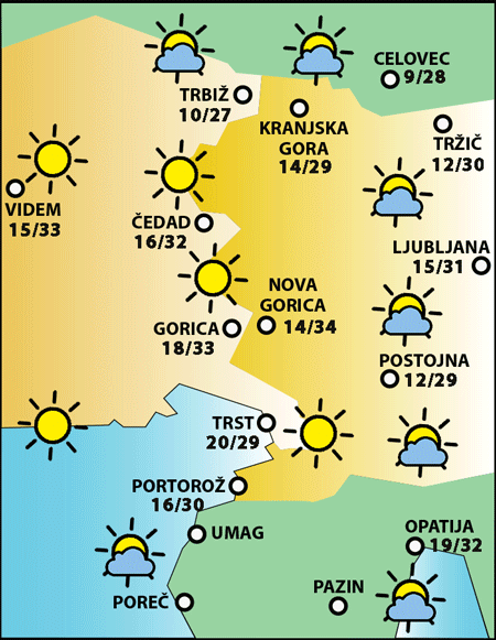 Jutri bo v nižini in na obali jasno, v hribih pa rahlo oblačno. Popoldne bo pihal veter. Temperature se bodo zvišale predvsem v nižini.
