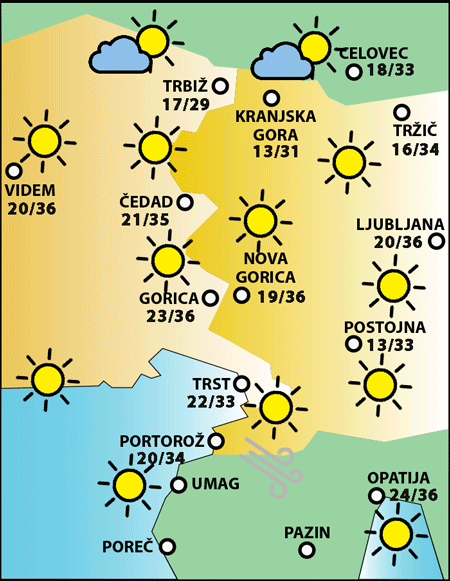 V torek bo pretežno jasno in še nekoliko bolj vroče.