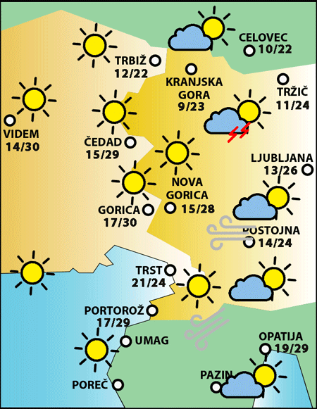 Vremenska napoved Hidrometeorološkega zavoda Republike Slovenije in deželne meteorološke opazovalnice ARPA