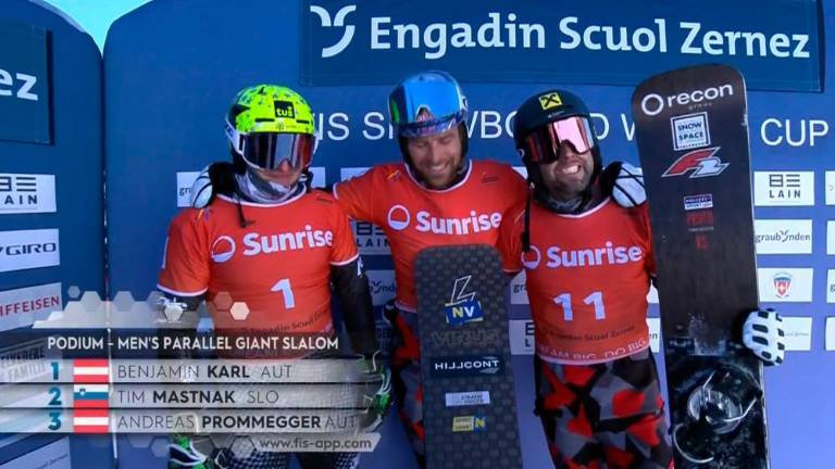 Slovenski deskar Tim Mastnak je bil drugi v paralelnem veleslalomu za svetovni pokal v švicarskem Scuolu. V velikem finalu se je pomeril z Avstrijcem Benjaminom Karlom, pri čemer ga je olimpijski zmagovalec iz Pekinga 2022 ugnal za devet stotink.