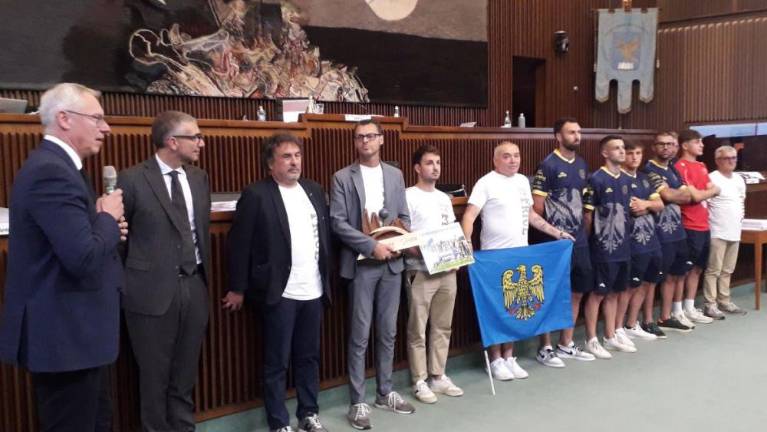 Deželni odbornik Pierpaolo Roberti je včeraj v deželnem svetu sprejel delegacijo nogometne reprezentance Furlanov, ki jo je vodil duša projekta Daniele Puntel ter selektor Mauro Lizzi. Prisotni so bili tudi nekateri nogometaši, ki so na Europeadi v Nemčiji in na Danskem osvojili 1. mesto. »Ponosni smo na furlansko selekcijo,« je dejal odbornik Roberti, ki je še dodal: »Zakaj ne, leta 2028 bi lahko Europeado organizirali v FJK. Preverili bomo pogoje za vložitev kandidature. V organizacijo pa bi seveda vpletli še Slovence, ki so prav tako nastopili v Nemčiji, in tudi nemško skupnost«.