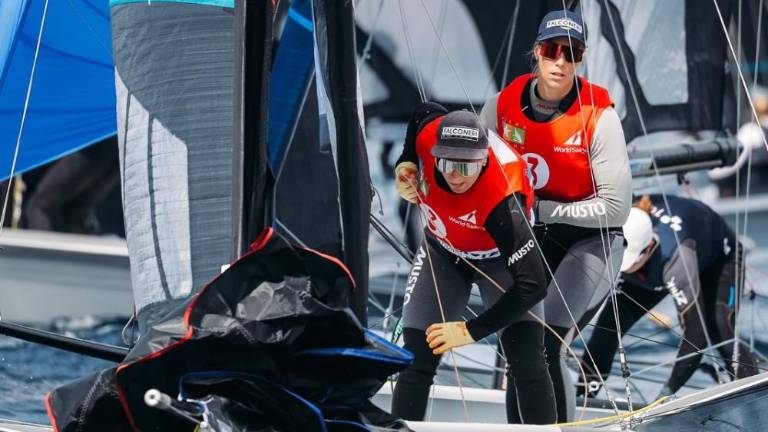 Na svetovnem prvenstvu v jadralnih olimpijskih razredih 49er in 49er FX na španskem otoku Lanzarote se je z današnjimi plovi sklenil prvi del kvalifikacij. Najboljših 25 posadk bo jutri tekmovanje nadaljevalo v zlati skupini.