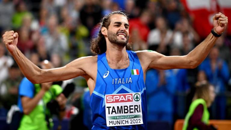Tridesetletni Italijan Gianmarco Tamberi, ki je bil lani zlat na olimpijskih igrah v Tokiu, je na atletskem evropskem prvenstvu v Munchnu osvojil zlato kolajno v skoku v višino. Z višino 230 cm je bil boljši od Nemca Poyteja in Ukrajinca Potsenka.