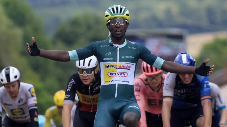 Eritrejec Biniam Girmay (Intermarche-Wanty) je zmagovalec osme etape kolesarske dirke po Franciji. Na trasi od Semur-en-Auxoisa do Colombey-les-Deux-Eglisesa (183,4 km) je bil najboljši v sprintu glavnine. Vodstvo v skupnem seštevku je obdržal slovenski as Tadej Pogačar (UAE Team Emirates). Petindvajsetletnik s Klanca pri Komendi ima še naprej 33 sekund naskoka pred Belgijcem Remcom Evenepoelom (Soudal Quick-Step) in 1:15 minute pred tretjeuvrščenim Dancem Jonasom Vingegaardom (Visma-Lease a Bike). Drugi slovenski zvezdnik Primož Roglič (Red Bull-BORA-hansgrohe) je skupno četrti z 1:36 minute zaostanka.
