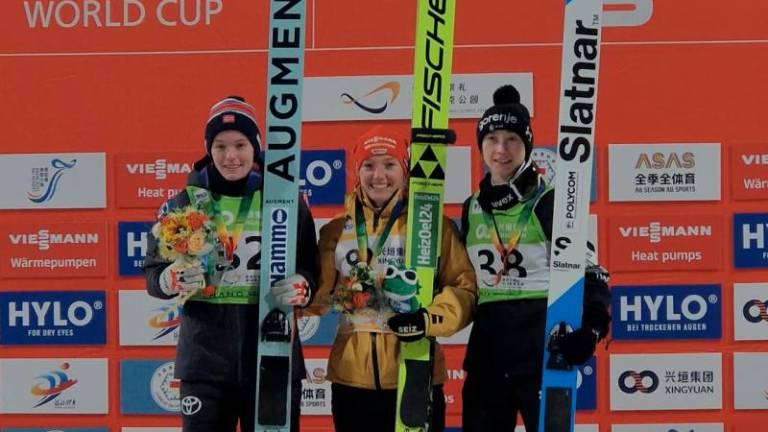 Nemka Katharina Schmid (100 in 106 m, 237 točk) je zmagala na tekmi za svetovni pokal smučarskih skakalk v Zhangjiakouu, kjer so bile pred dvema letoma olimpijske igre. S tem je povečala vodstvo v skupnem seštevku. Tretja je bila Nika Prevc (94 in 98 m, 209,9), četrta pa Ema Klinec (101,5 in 98 m, 203,3).