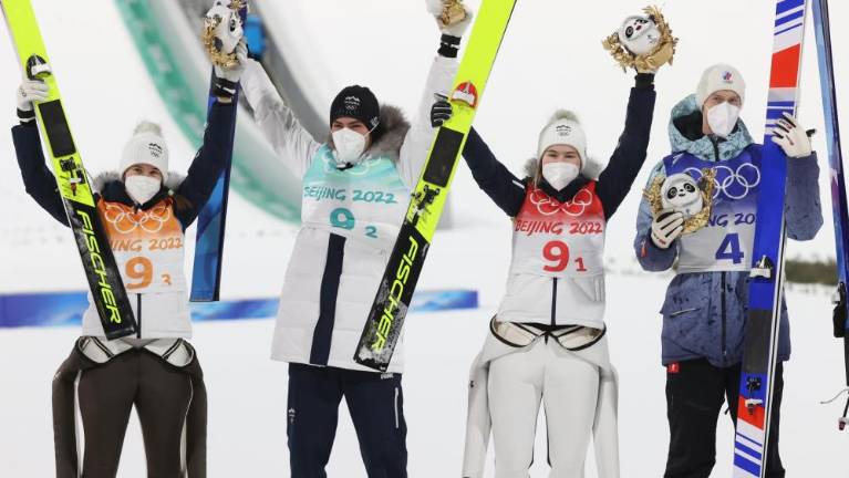 Na mešani ekipni tekmi smučarskih skakalcev na olimpijskih igrah v Pekingu bi slovensko ekipo, ki so jo sestavljali skakalki Urša Bogataj in Nika Križnar ter skakalca Pete Prevc in Timi Zajc, lahko izdala samo napačna oprema, zaradi katere so diskvalificirali kar nekaj ekip. A se to ni zgodilo. Mešana ekipa je naposled na tekmi svoje delo opravila perfektno. Na koncu je za več kot 110 točk premagala najbližje tekmece in se okitila z zlato kolajno, ki so jo na olimpijskih igrah prvih podelili.. Urša Bogataj je bila samozavestna kot na posamični tekmi, Nika Križnar še naprej v odlični formi, Timi Zajc pridih mladosti na moški strani in Peter Prevc, najizkušenejši mož, je bil pravi kapetan ekipe.Odlična zmes za še en slovenski skakalni presežek lanske zime.