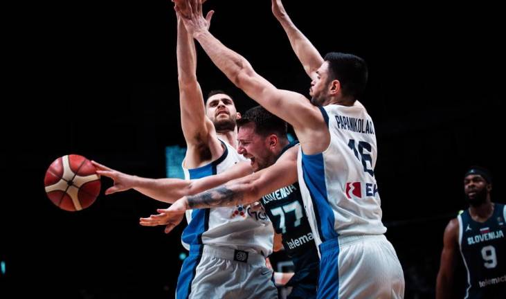 Slovenija je izgubila drugič na turnirju. Grčija je bila pred polno dvorano temperamentnih navijačev prepričljivo boljša in se bo v finalu v nedeljo zvečer za edino olimpijsko vozovnico iz Pireja pomerila z zmagovalcem drugega polfinala Hrvaška - Dominikanska republika. Pri Sloveniji je Luka Dončić zbral 21 točk, 7 skokov in 5 podaj ter imel 10 izgubljenih žog. Josh Nebo je prispeval 17 točk.
