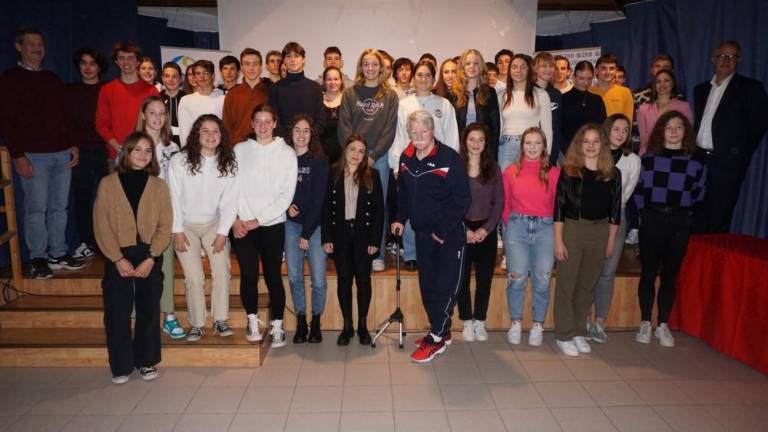 Združenje slovenskih športnih društev v Italiji in Zadružna kraška banka Trst Gorica sta danes v Jamljah podelila nagrado Šport in šola za dijake višjih srednjih šol na Tržaškem in Goriškem, ki dosegajo odlične uspehe v šoli in obenem tudi vidne rezultate na športnem področju. ZSŠDI in ZKB sta nagrado podelila že enaintridesetič. Letos je bilo kar 54 nagrajencev (28 deklet in 26 fantov, zastopanih je bilo 13 različnih športnih panog), ki so poleg denarne nagrade ZKB prejeli tudi umetniško delo Irine Goruppi.