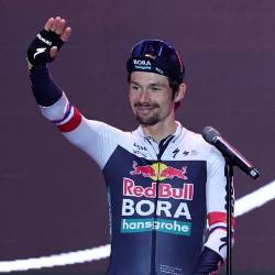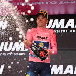 Drugo mesto je pripadlo Kanadčanu Dereku Geeju (Israel-Premier Tech), tretje pa domačinu Alessandru De Marchiju (Jayco-AlUla).