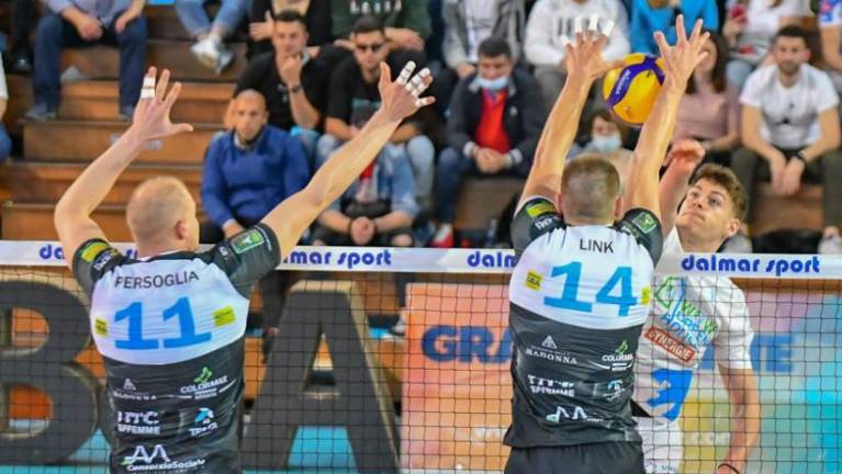 Na prvi finalni tekmi za napredovanje v A2-ligo je Tinet Prata premagala s 3:1 Abba Pineto, pri katerem nastopa tudi štmavrski odbojkar Sandi Persgolia (4 točke).